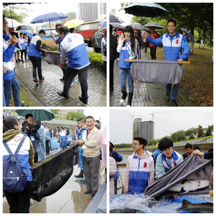 三峽青年志愿者們準時提前抵達活動現場,盡管下著小雨,但立刻投入到志愿服務工作當中,積極開展現場秩序維護、環保宣傳冊頁發放、放流鱘魚轉運、向熱心的市民耐心講解相關科普知識等工作。近3個小時的學習和服務活動當中,大家有序分工、各司其職,向當地市民和參與活動的相關機構很好地展現了三峽青年的良好精神風貌。