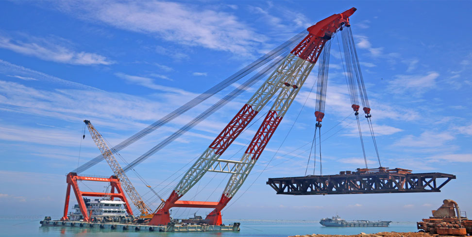 施工中的福建興化灣海上風電樣機試驗風場