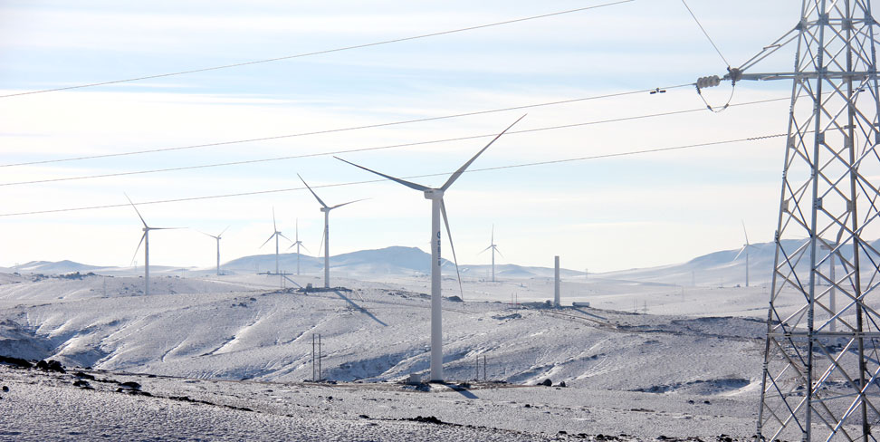 雪中的內蒙古四子王風電場