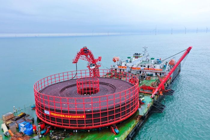 ▲ 成功應用±400千伏交聯聚乙烯絕緣光纖復合直流海底電力電纜的江蘇如東海上風電場