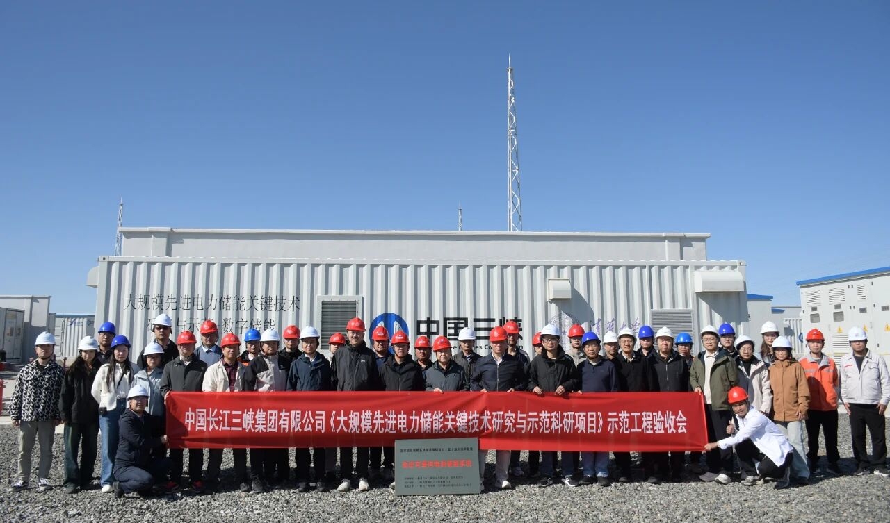 驗收會議上,由來自國網甘肅電科院、中科院物理所、中科院電工所等單位的特邀行業資深專家及三峽能源、三峽陸上能源、中國能建等工程建設、運行單位代表組成的聯合驗收專家組聽取了科研團隊關于示范工程建設與運行評估匯報,現場檢查了系統設備與儲能電站運行狀況,一致認為該項目圓滿完成了示范工程建設與調試,系統運行良好,各項技術指標滿足科研項目合同要求,同意通過示范工程驗收。