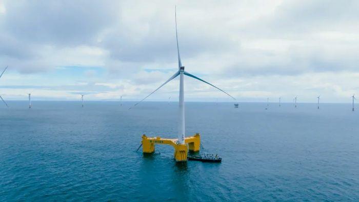 ▲?“三峽引領(lǐng)號”漂浮式風(fēng)機(jī) 攝影:陳磊