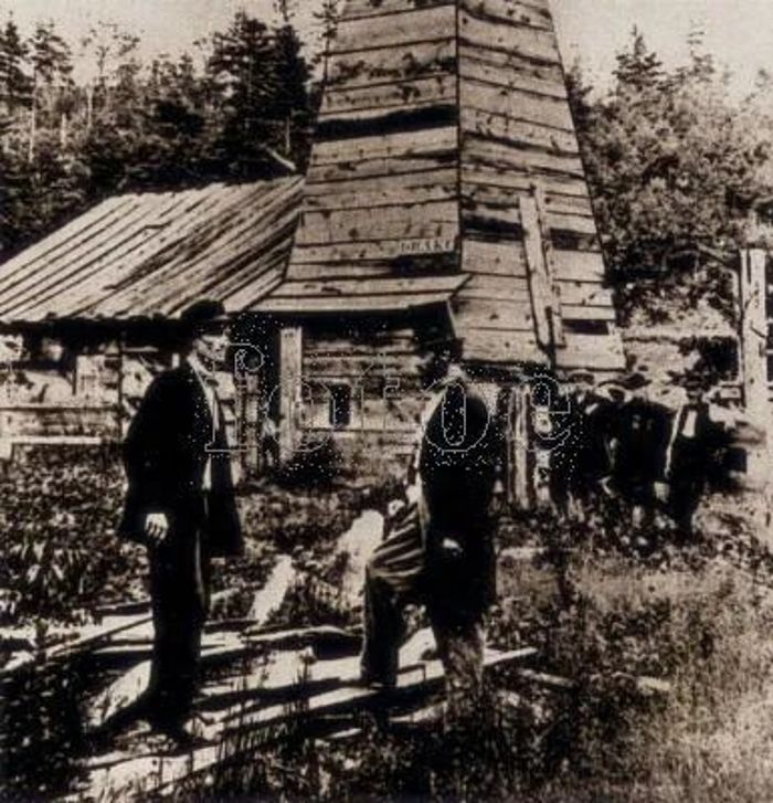 ▲19世紀,德雷克上校(戴高帽者)在賓夕法尼亞州的泰斯維爾。1859年,德雷克在泰斯維爾開掘出世界第一口油井? ?文化傳播 FOTOE-10234126