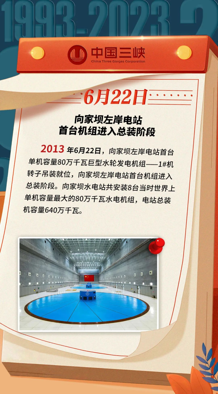 三峽·歷史上的今天丨向家壩左岸電站首臺機組進入總裝階段(6月19日-6月25日)