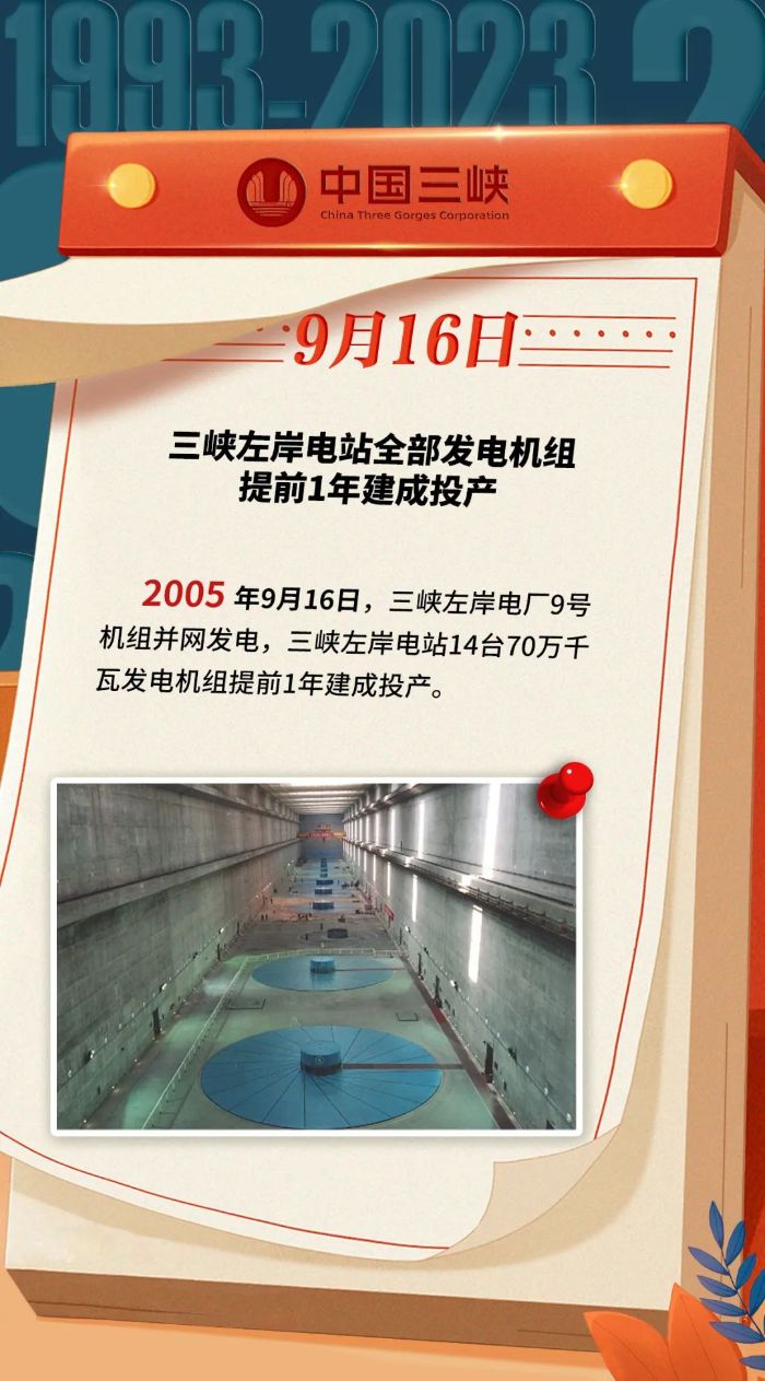 三峽 · 歷史上的今天丨(9月11日-9月17日)三峽左岸電站全部發電機組提前1年建成投產