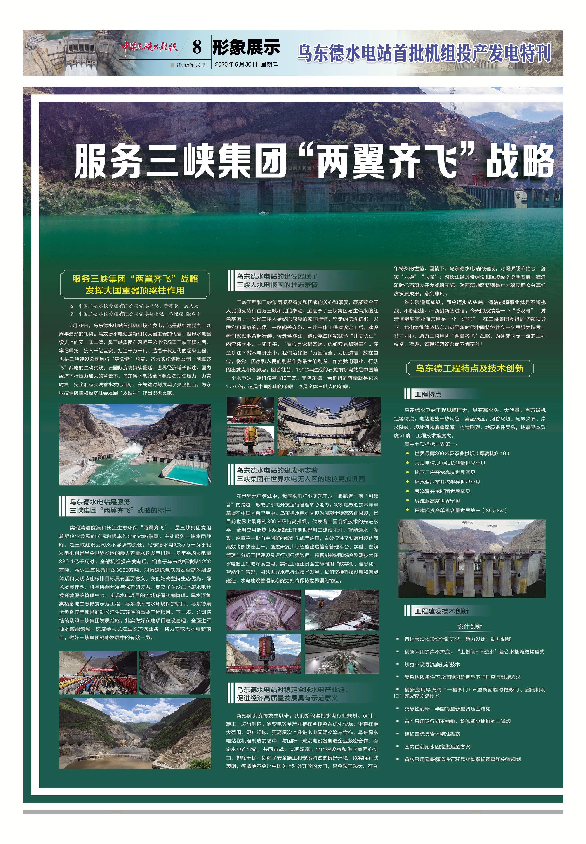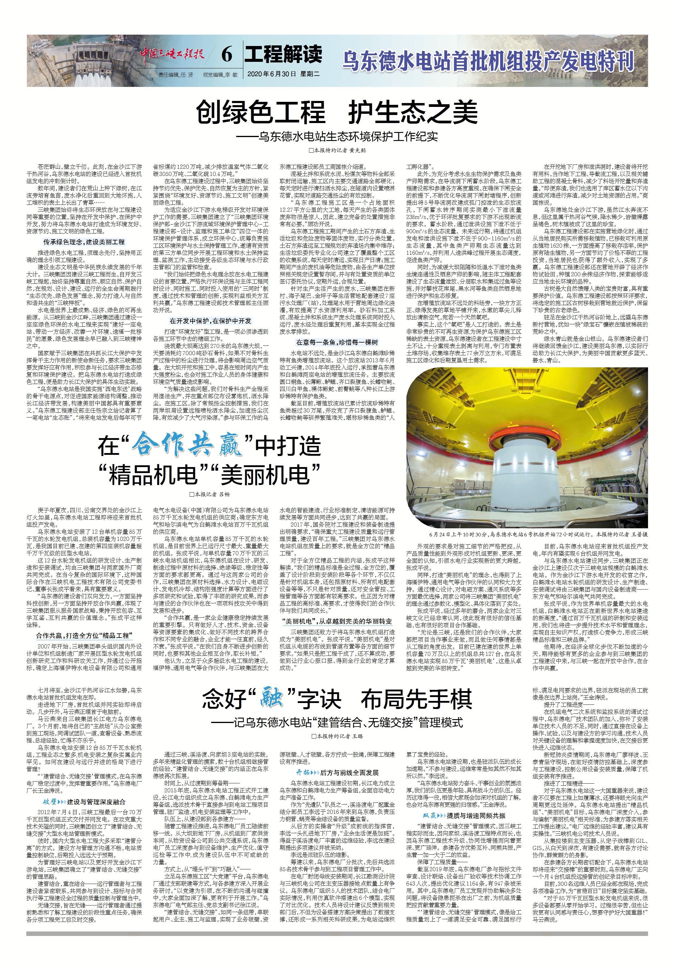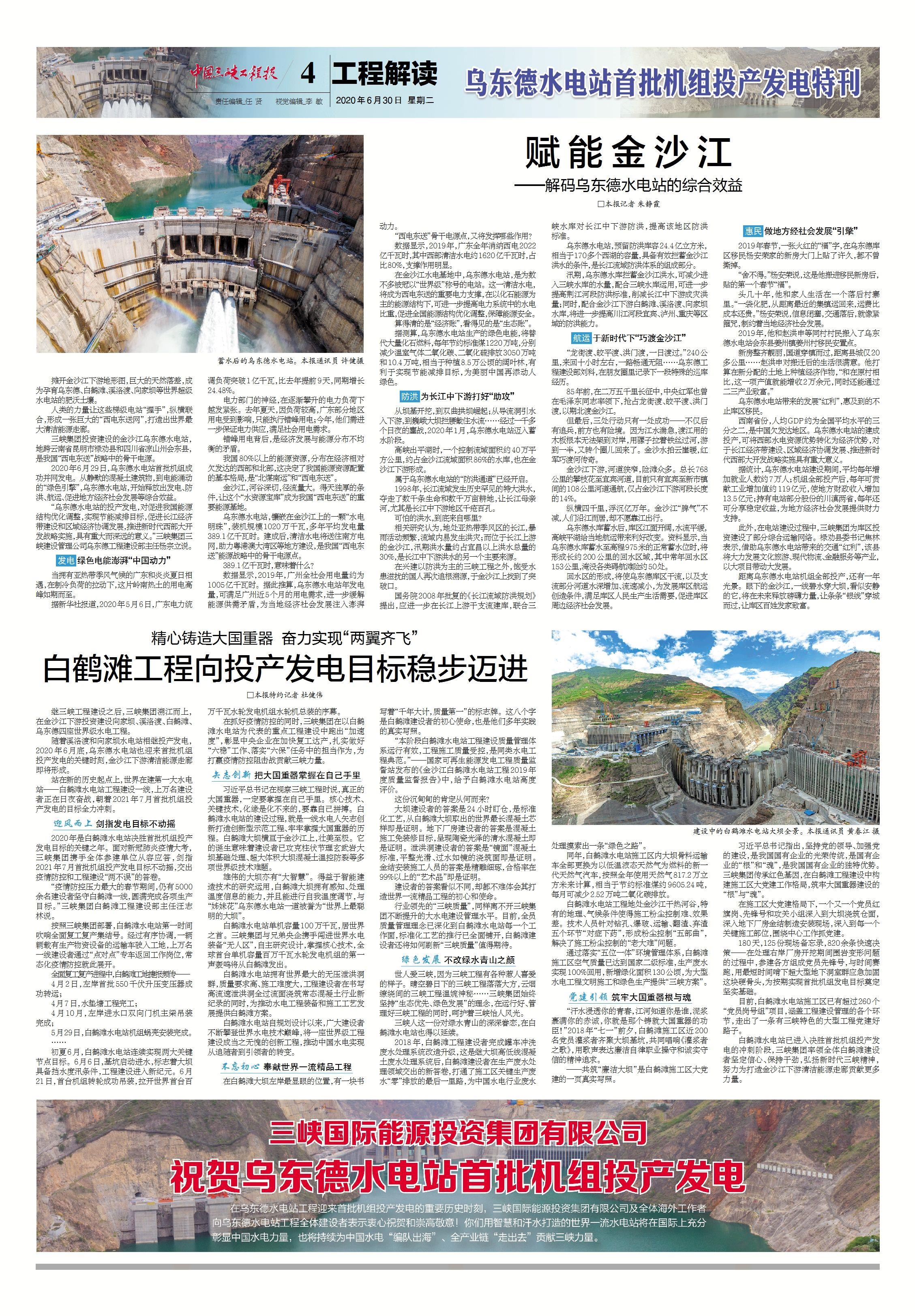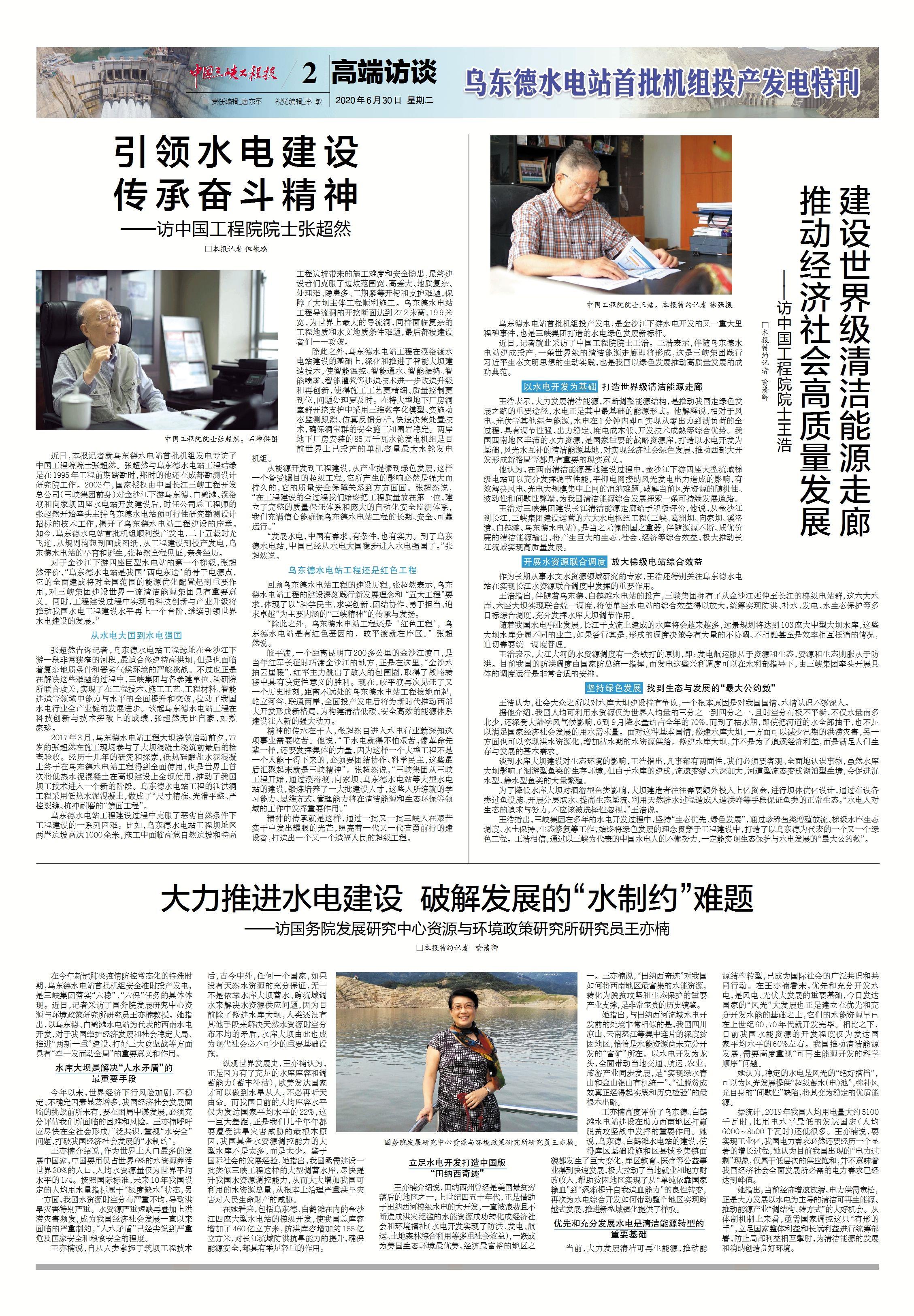 中國工程院院士王浩表示,伴隨烏東德水電站建成投產,一條世界級的清潔能源走廊即將形成,這是三峽集團踐行習近平生態文明思想的生動實踐,也是我國以綠色發展推動高質量發展的成功典范。[詳情]