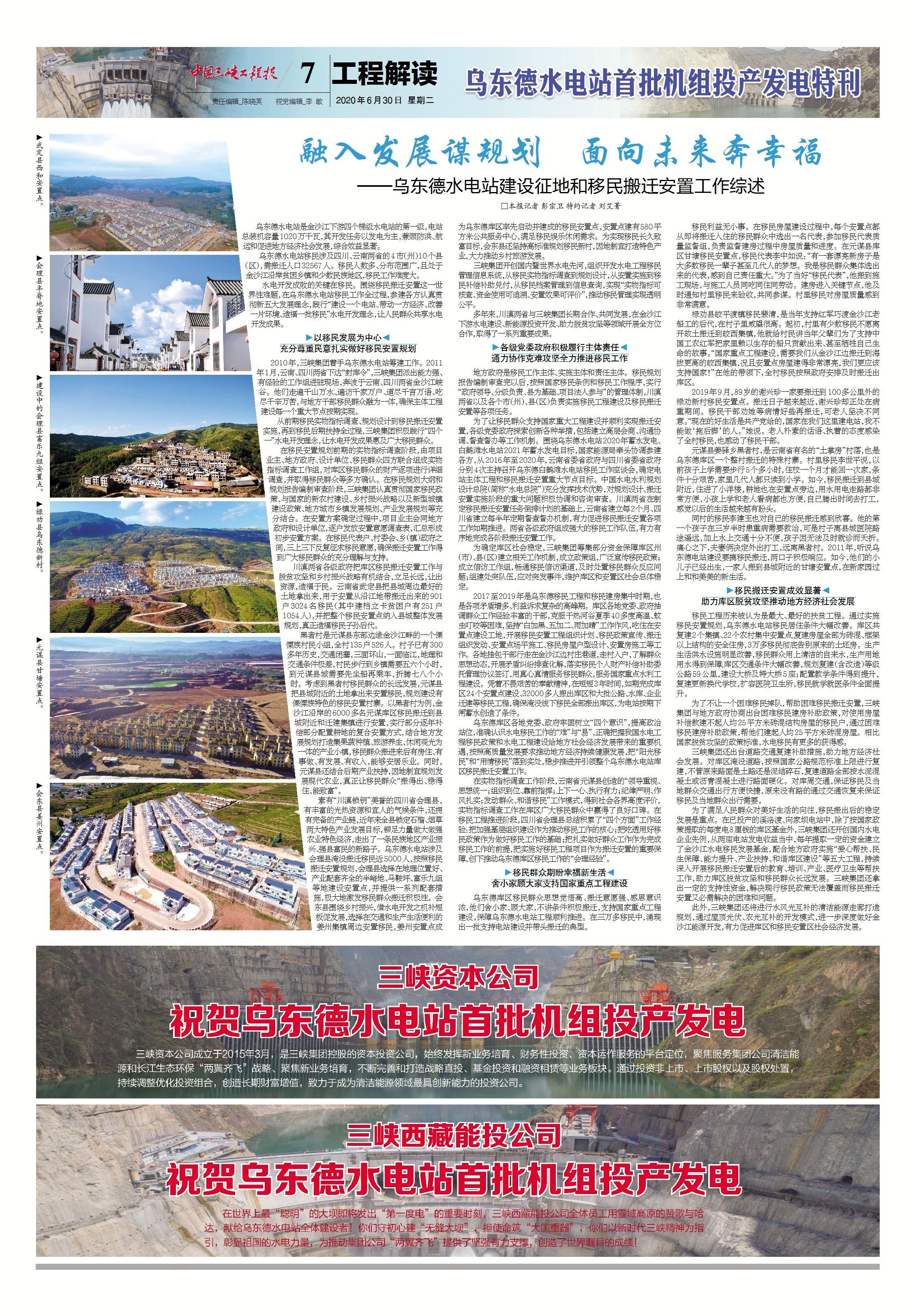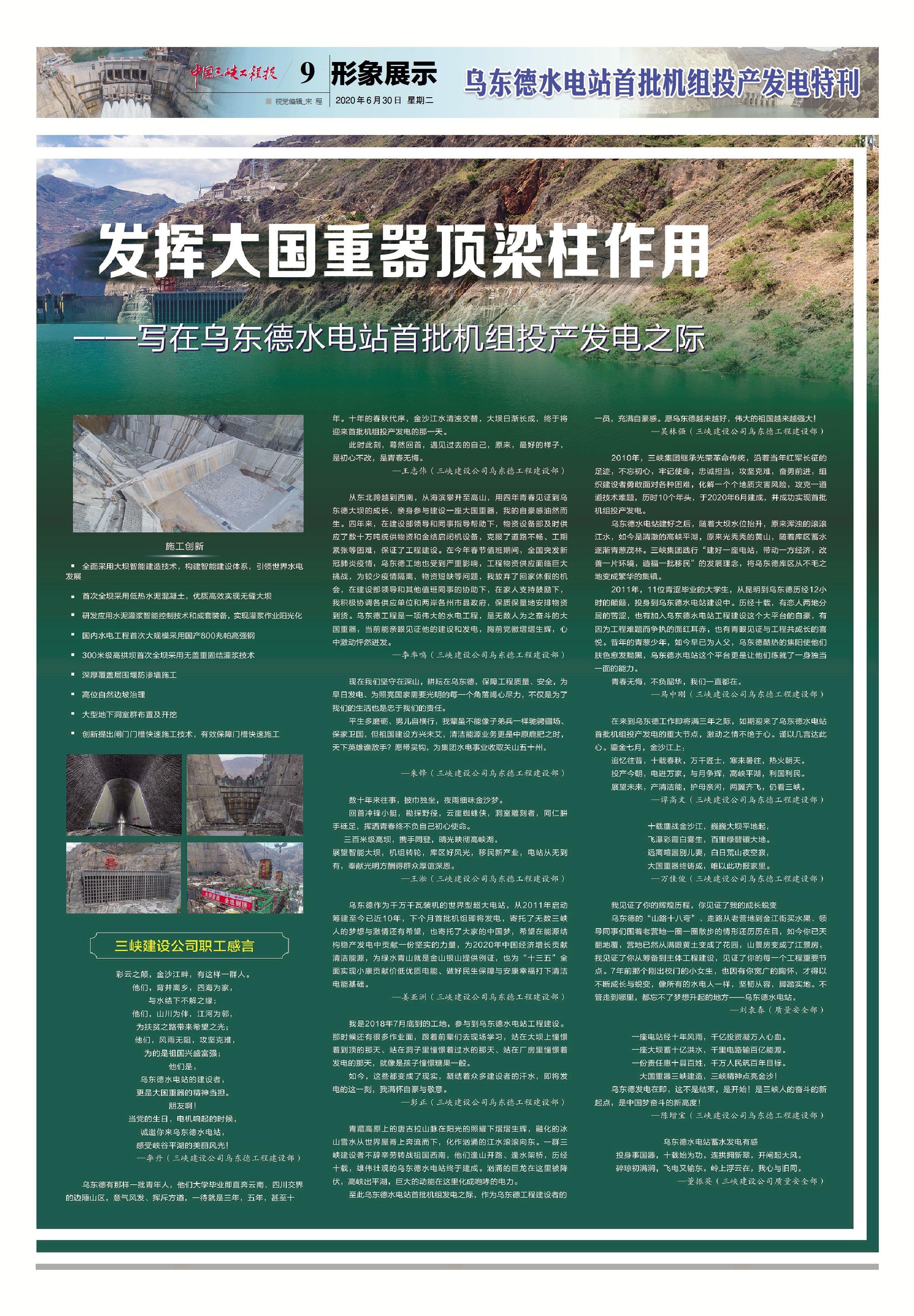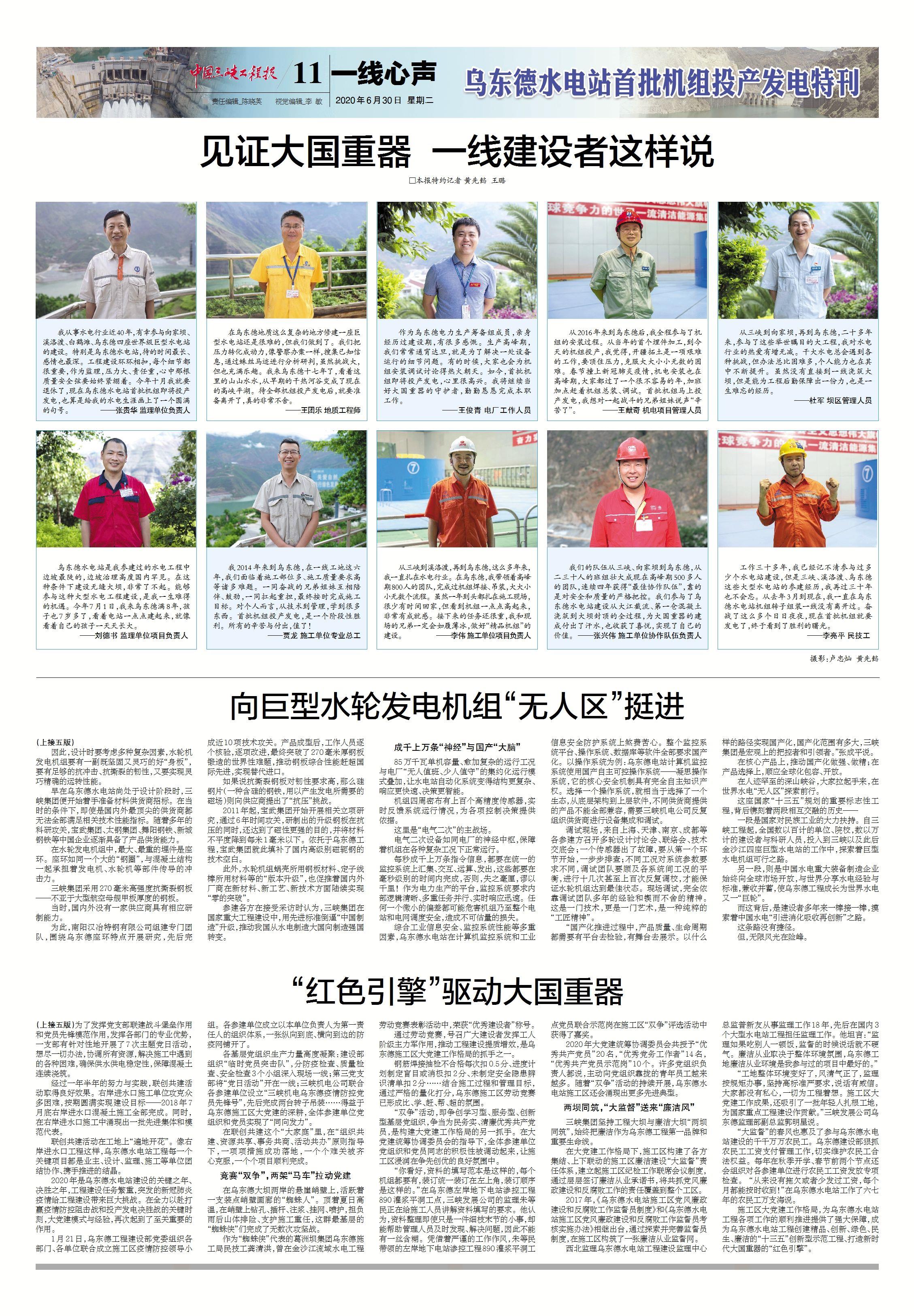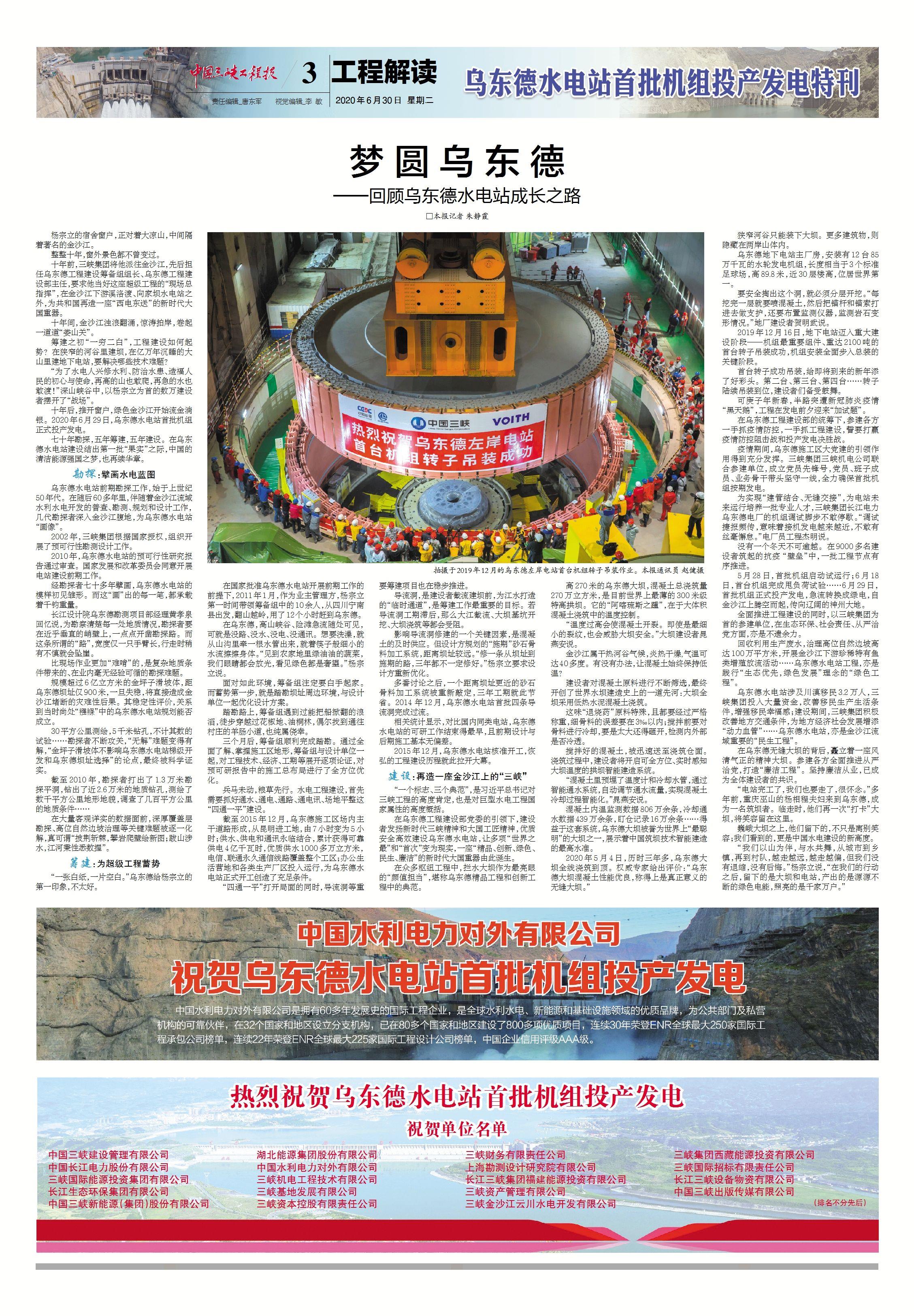 中國工程院院士王浩表示,伴隨烏東德水電站建成投產,一條世界級的清潔能源走廊即將形成,這是三峽集團踐行習近平生態文明思想的生動實踐,也是我國以綠色發展推動高質量發展的成功典范。[詳情]