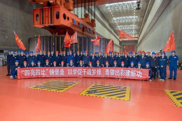 ▲長(zhǎng)江電力檢修廠歲修現(xiàn)場(chǎng)“四亮四比”黨建品牌活動(dòng)啟動(dòng)儀式