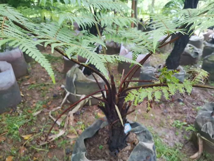 陰生桫欏是一種喬木狀的蕨類植物,有“蕨類植物之王”贊譽(yù)。它的莖干高度可達(dá)5米,直徑約8厘米,葉柄褐禾稈色至淡棕色,葉片三回羽狀深裂,生長于海拔350米-1000米林下溪邊陰濕處。由于其稀有性和特殊的生態(tài)價(jià)值,陰生桫欏被列為國家二級保護(hù)野生植物。