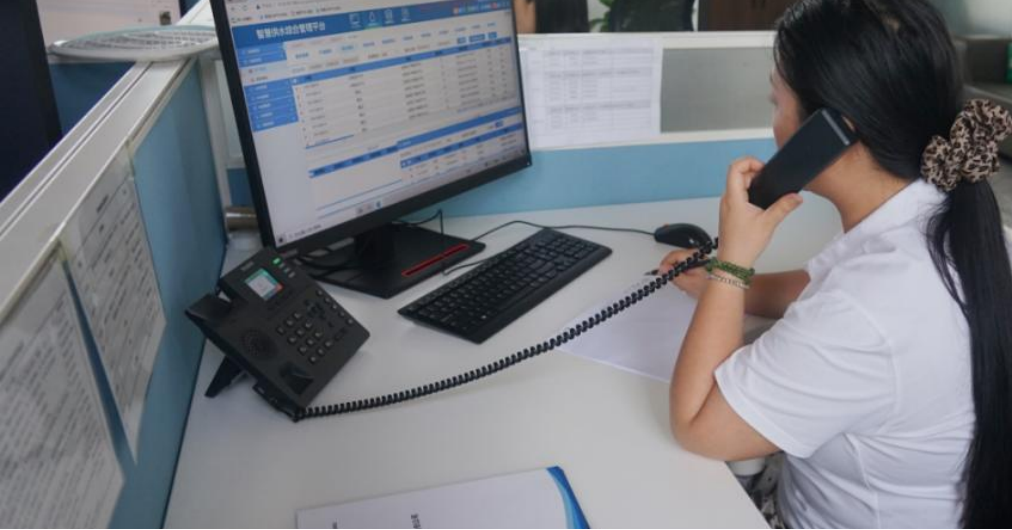 叮鈴鈴,調控中心電話鈴聲響起。三聲內,客服人員劉茜迅速接起:“您好,這里是水管家熱線,請講。”放下電話,劉茜將信息上傳系統并進行分發派單,“用戶反饋家中水壓低,已反饋東新城營業所處理。”